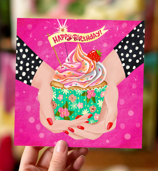 Kaart verjaardag milkshake roze met zon sweet birthday