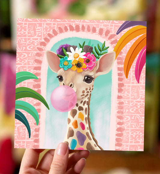 Kaart felicitatie geboorte meisje giraf met hartjes baby