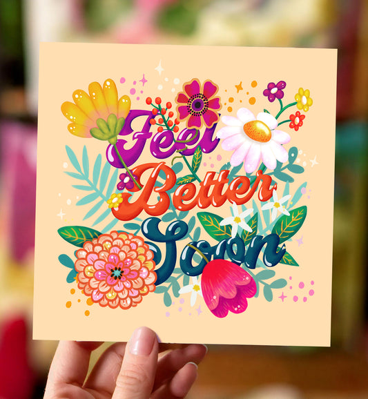 Kaart beterschap feel better soon kleurrijke bloemen