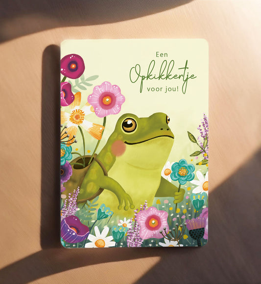 Kaart beterschap kikker opkikkertje bloemen dieren ansichtkaart