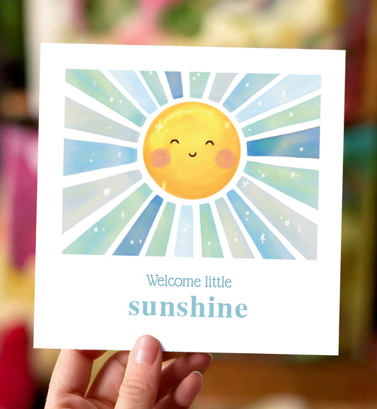 Kaart felicitatie geboorte jongen zonnestraal pastel kleuren baby