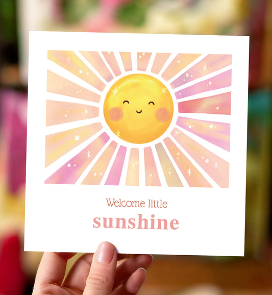 Kaart felicitatie geboorte meisje zonnestraal pastel kleuren baby