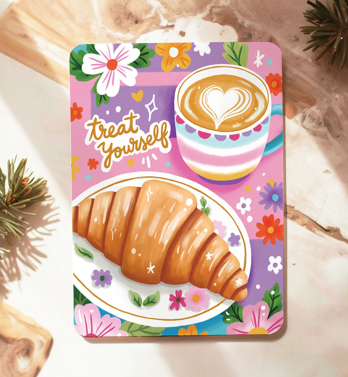Kaart felicitatie verjaardag croissant koffie cappuccino zomaar ansichtkaart